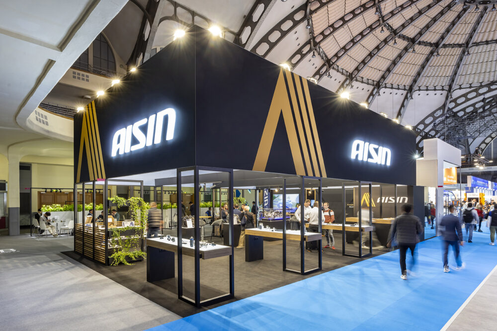 - AISIN Automechanika Francfort → Suspended illuminated logo visible from all angles.