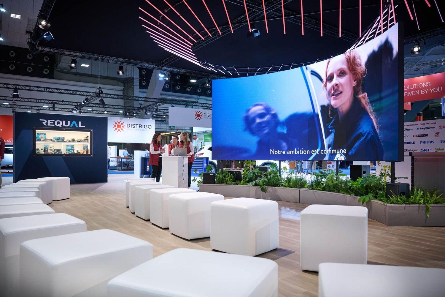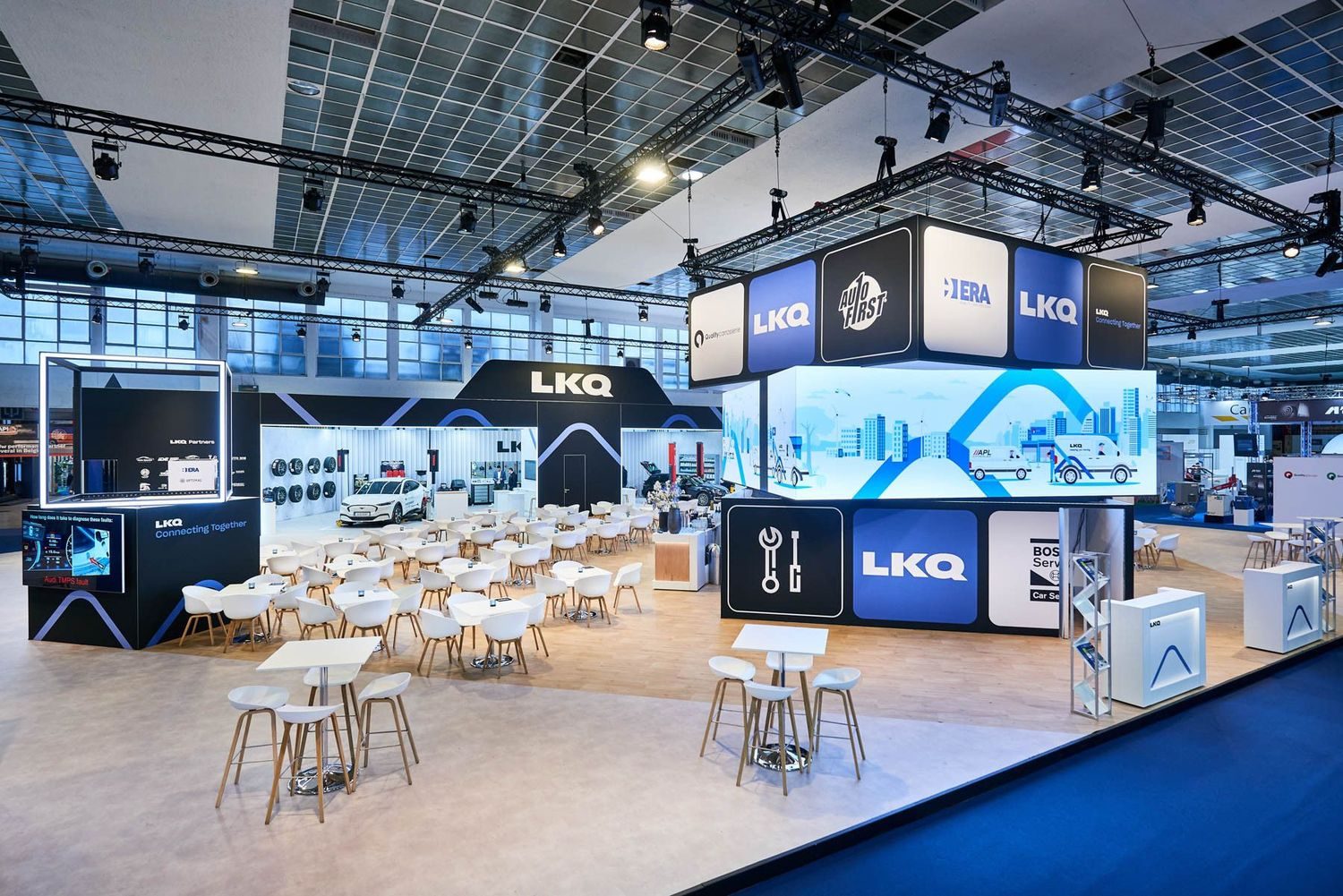 A themed booth instantly immerses visitors in your world and strengthens your brand identity. At Autotechnika Brussels, LKQ recreated a garage atmosphere with industrial elements and realistic metallic effects, reflecting its sector.