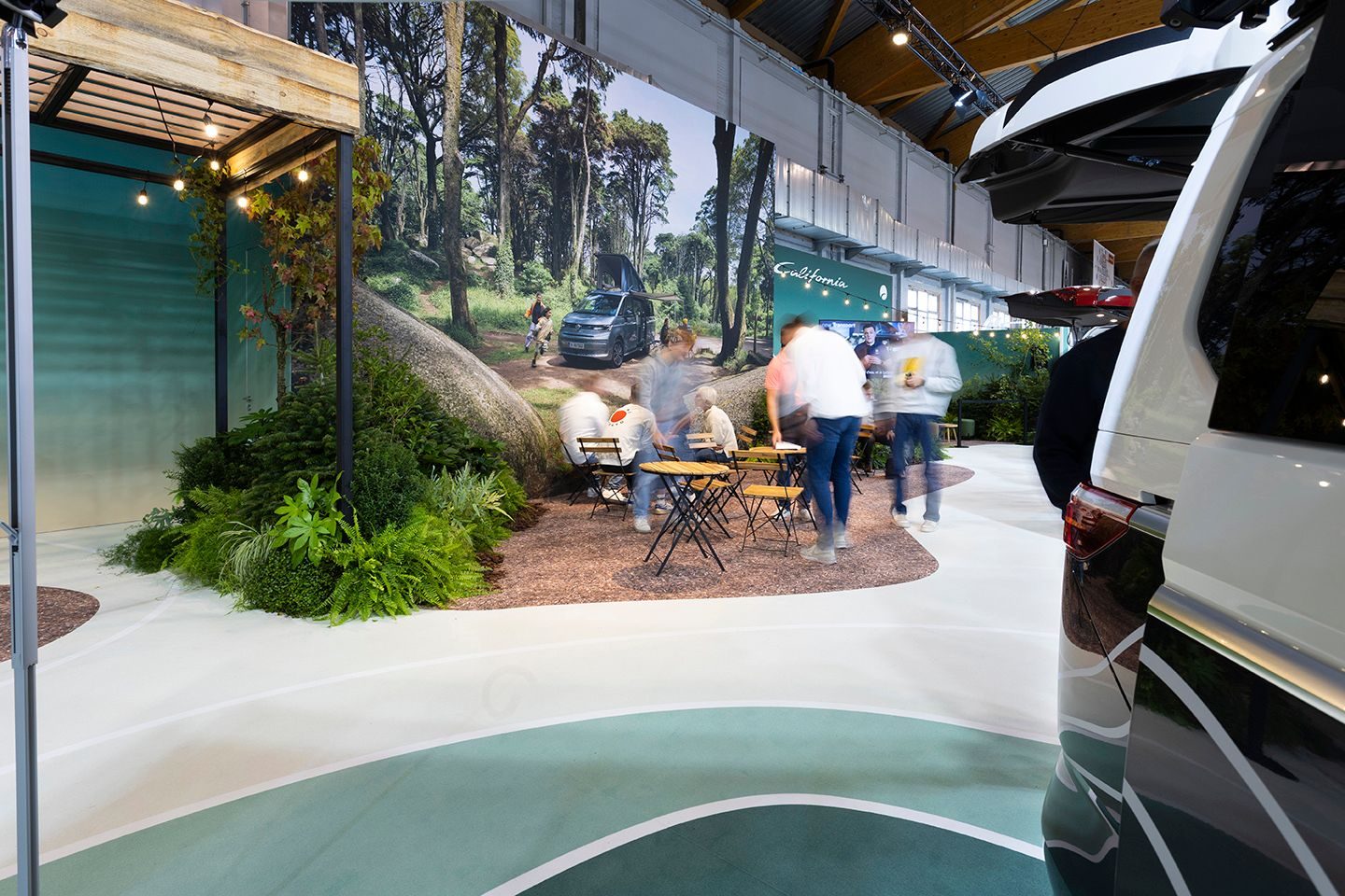 ● Volkswagen at Mobicar → Forest-inspired bivouac theme.