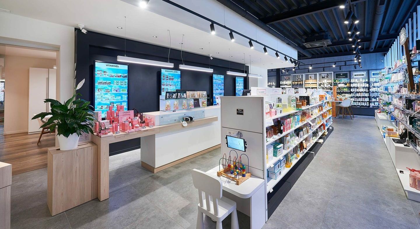 Si l’officine met clairement l’accent sur l’expérience patient et le conseil, elle intègre également de nouvelles technologies, telles qu’un robot de distribution et des écrans digitaux.